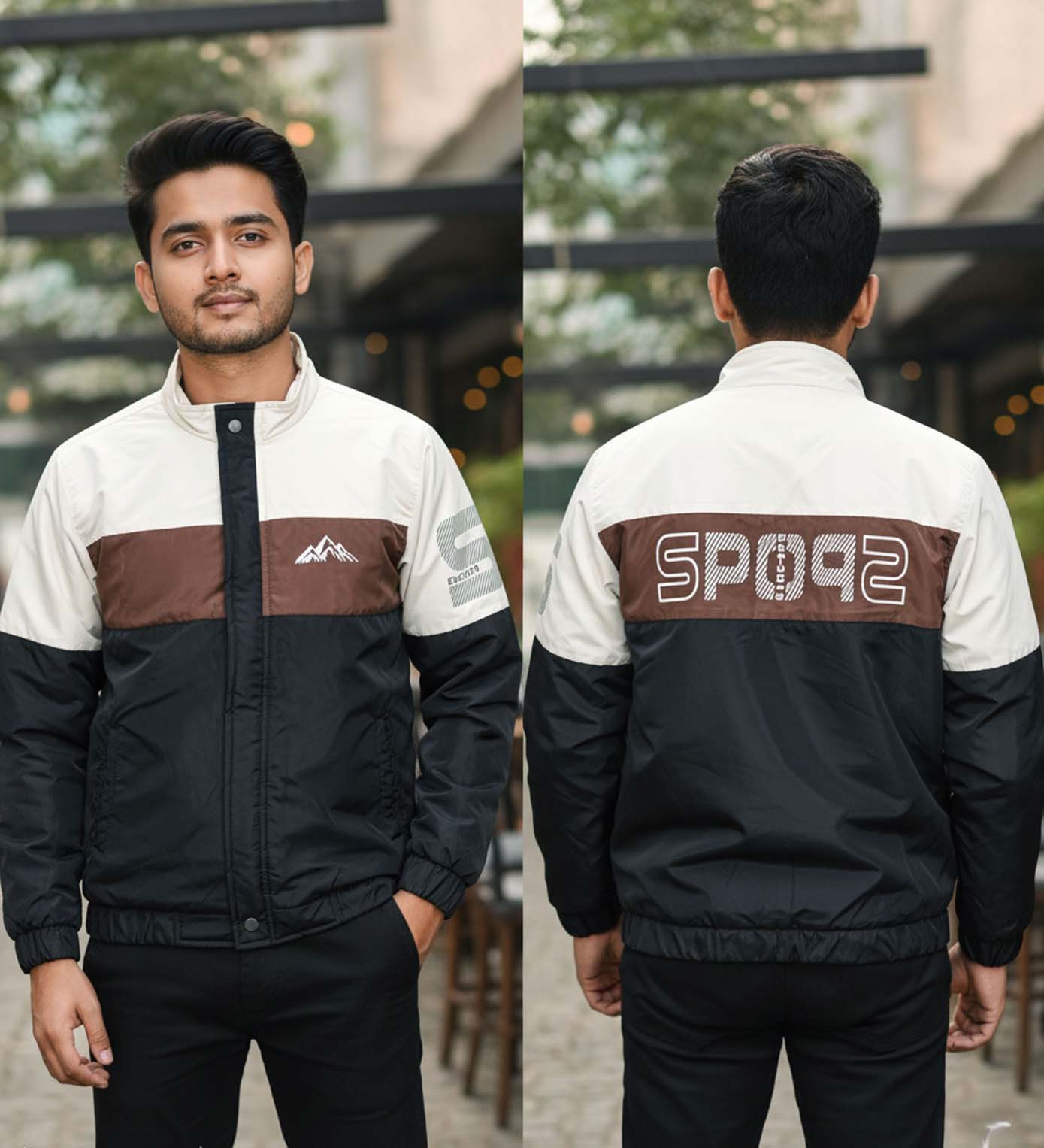 কালো, কফি এবং ক্রিম কালারের কম্বিনেশনে জ্যাকেটটি তৈরি করা হয়েছে। জিপারের উপরে এবং সামনের ২ টা পকেটের উপরে ক্রিম কালারের প্লাকেট রয়েছে