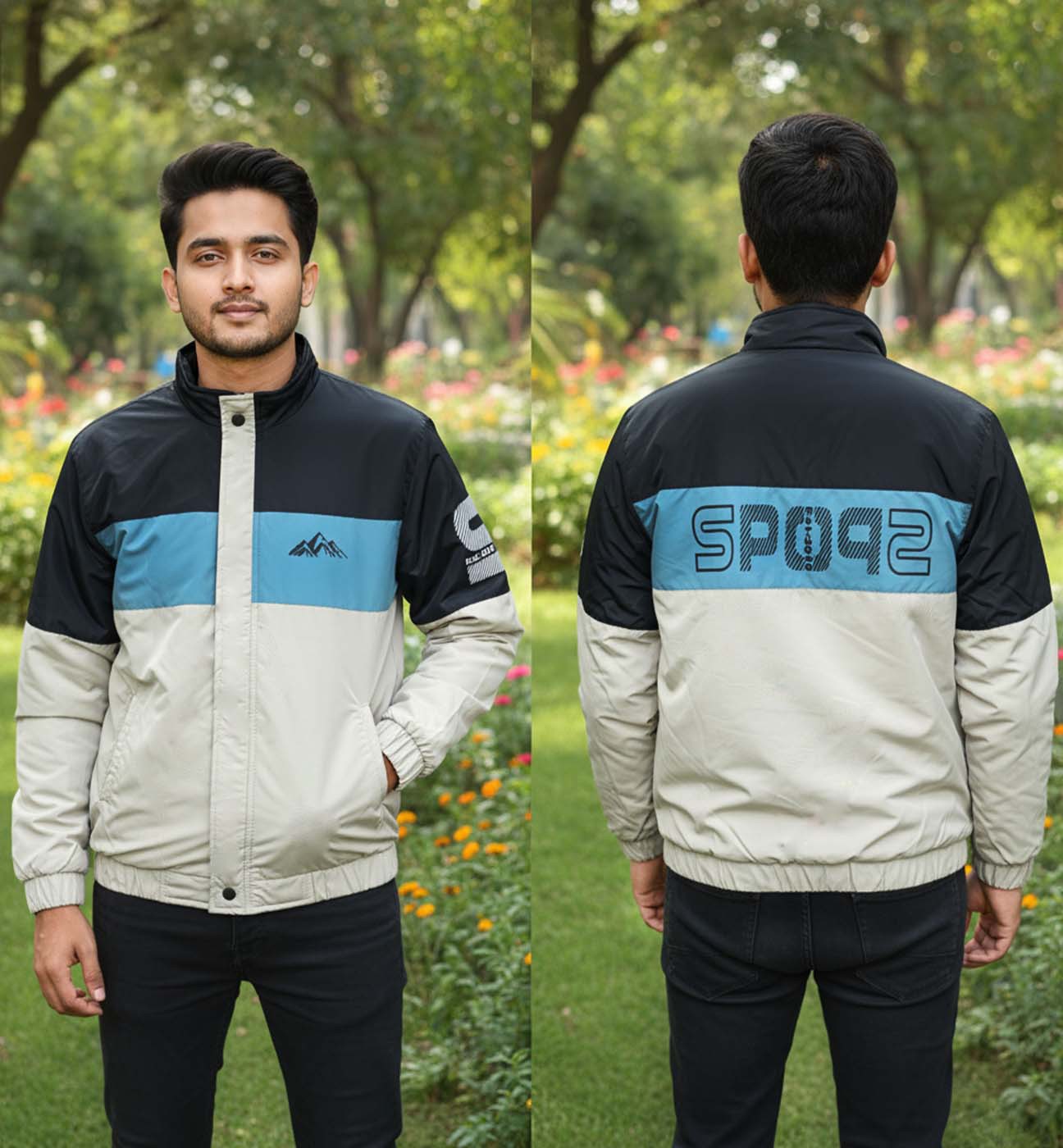 ক্রিম, পেস্ট এবং কালো কালারের কম্বিনেশনে জ্যাকেটটি তৈরি করা হয়েছে। জিপারের উপরে এবং সামনের ২ টা পকেটের উপরে ক্রিম কালারের প্লাকেট রয়েছে।