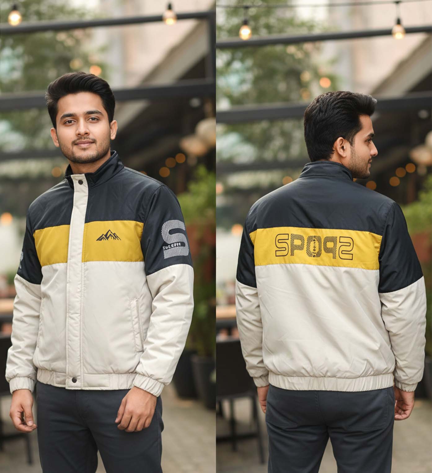 ক্রিম, হলুদ ও কালো কালারের কম্বিনেশনে জ্যাকেটটি তৈরি করা হয়েছে। জিপারের উপরে এবং সামনের ২ টা পকেটের উপরে ক্রিম কালারের প্লাকেট রয়েছে।