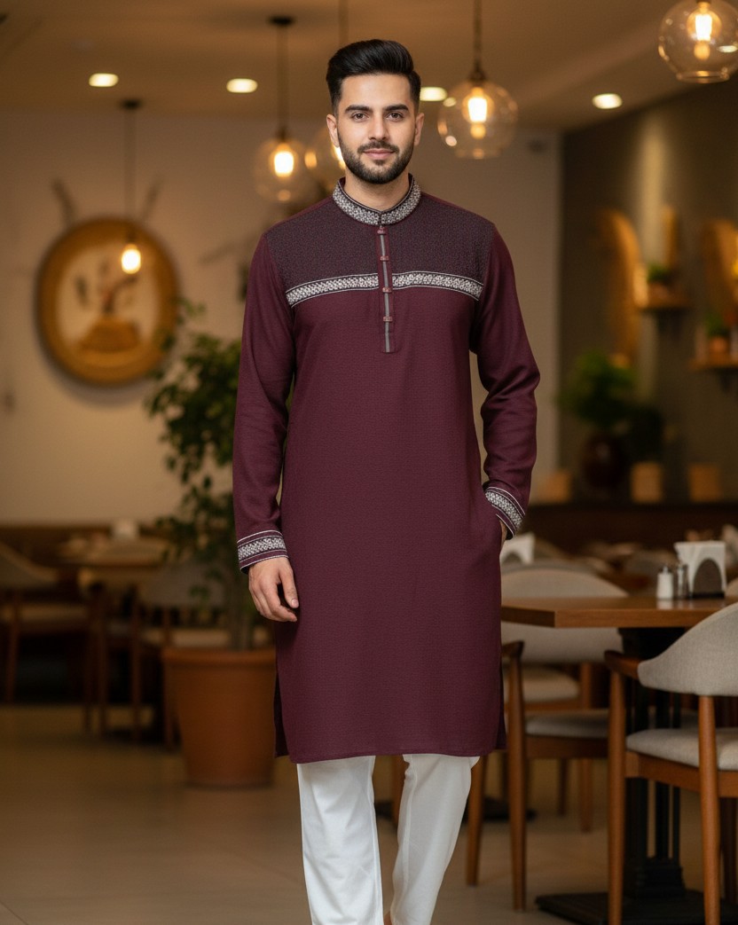 ✔ Design Type: বুকে হাতায় এবং কলারে প্রিমিয়াম কোয়ালিটির নিখুঁত এম্ব্রয়ডারি কাজ করা হয়েছে।
