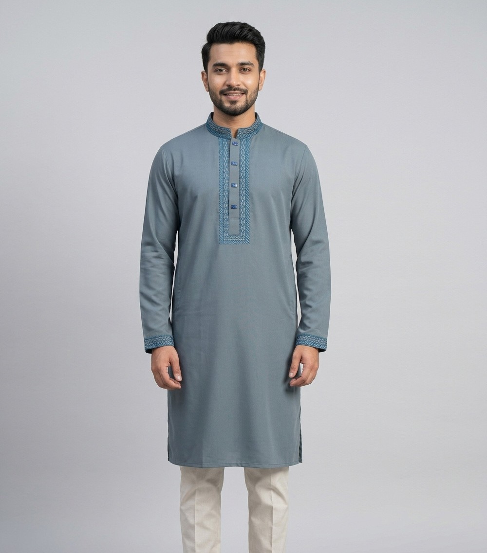 Grey Embroidery Panjabi - 1075